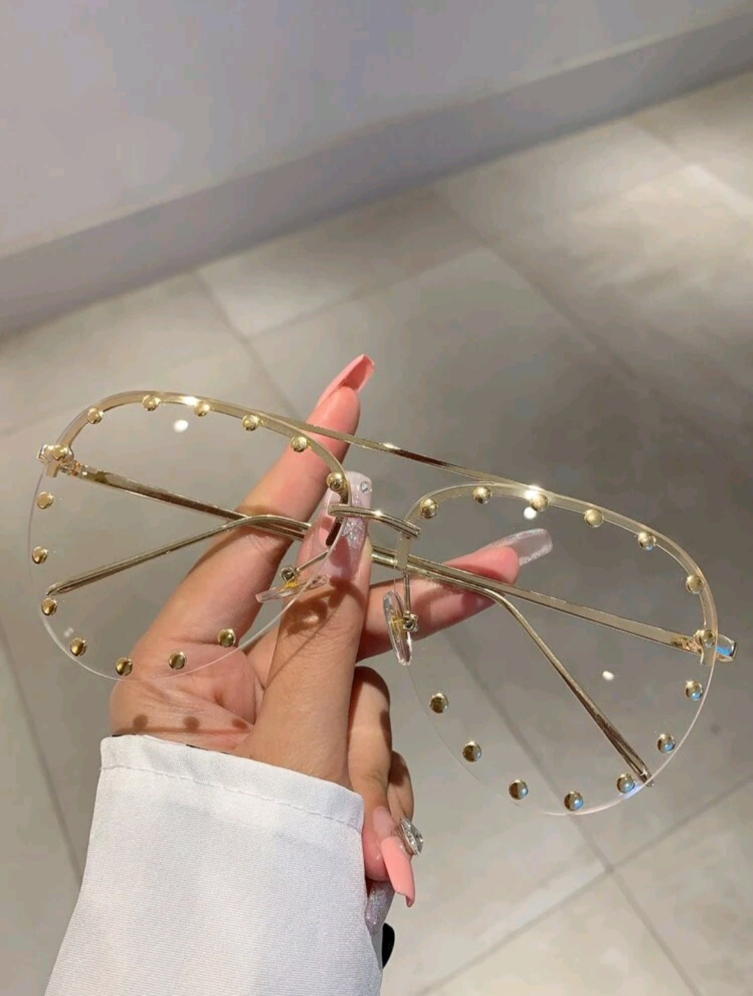 - Clear gold studded aviator